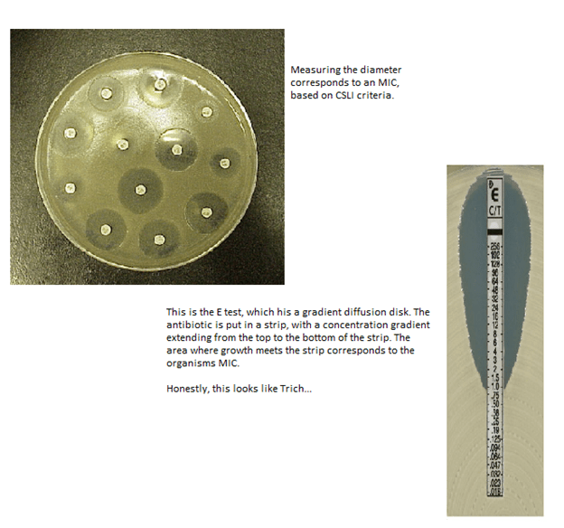 A bit on susceptibility testing. There are 2 methods to do this: dilution and diffusion