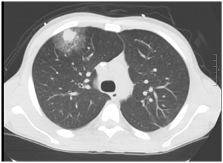 Further data comes from an even older study from 1999 (5). This retrospective review evaluated chest CT of 305 patients with proven pulmonary disease. 16 of these patients were immunocompromised. 22 of these patients had a halo sign (7%), of which broncheoalveolar carcinoma made up 5 patients, tuberculoma 2, myxovirus, SCC, non-Hodgkin B cell lymphoma, and metastatic RCC made up one a piece. Those with multiple nodules were found to have KS and Wegners. Only one patient with a halo sign had invasive pulmonary aspergillosis, who also had leukemia. This suggest the lack of sensitivity overall for the halo sign in cases of IPA, and this drops for those without “classic” risk factors.