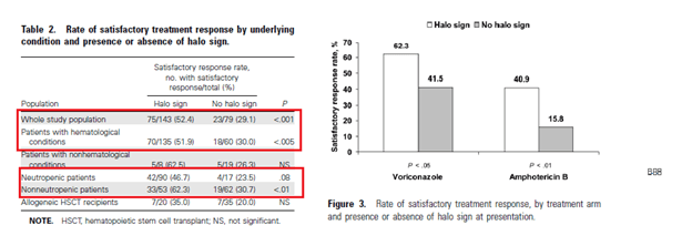 - Halo sign may not be as sensitive for invasive fungal infection, in general