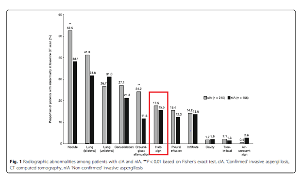 The percentage of patients with the halo sign in confirmed IPA was only 17.5% VS 52.5% for nodules.