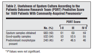 - García-Vázquez E, Marcos MA, Mensa J, et al. Assessment of the usefulness of sputum culture for diagnosis of community-acquired pneumonia using the PORT predictive scoring system. Arch Intern Med. 2004;164(16):1807-1811. doi:10.1001/archinte.164.16.1807