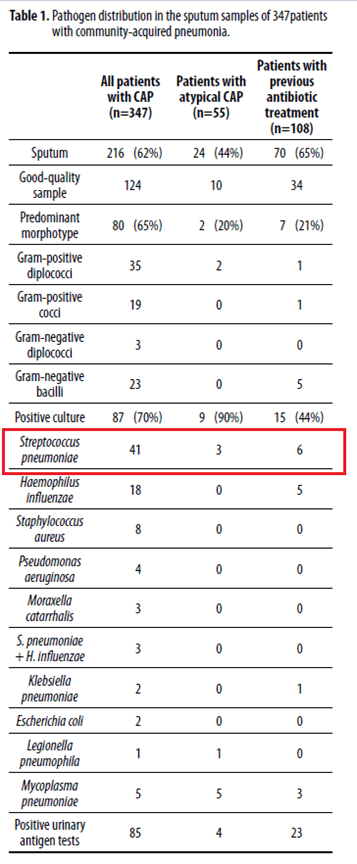 Not surprisingly, the most commonly found pathogen was Streptococcus pneumoniae, followed by staph aureus, and beta-hemolytic strep.