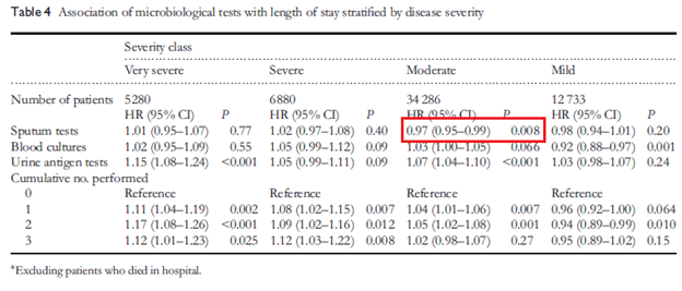 While sputum testing was associated with decreased length of stay in moderate cases: