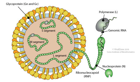 The two structures to consider here are the nucleoprotein (N) and the glycoprotein (Gn and Gc). This is because diagnostics involves antibody presence against N antigen and viral G antigen (the latter of which is highly specific; 6).